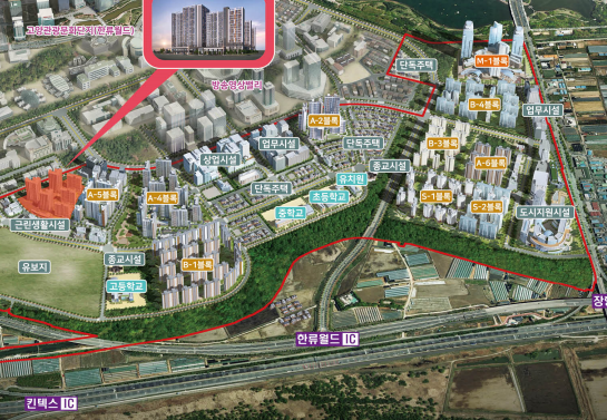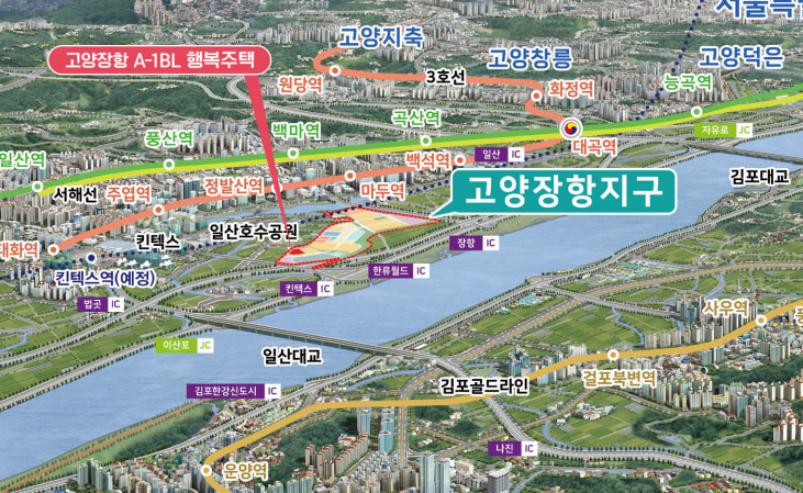 고양장항 A-1BL 행복주택의 지역조감도와 교통망도 인데요