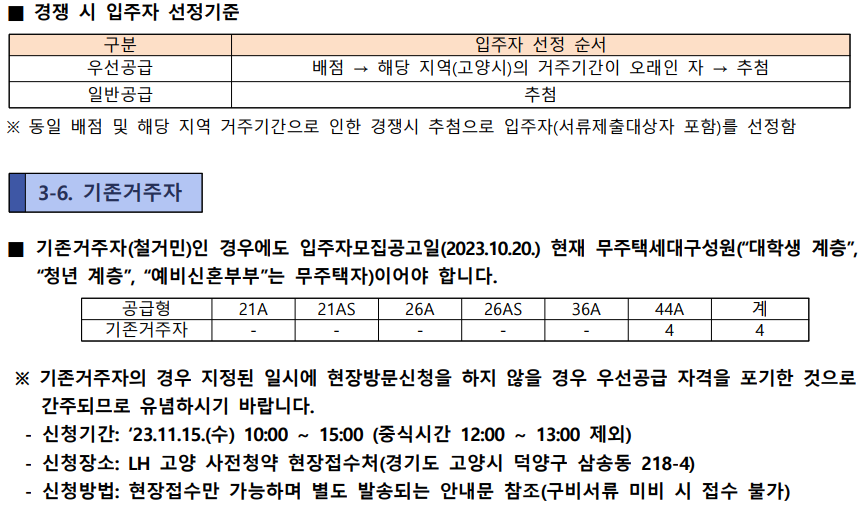 기존거주자의 경우 공고일 기준으로 무주택세대구성원 이어야 합니다