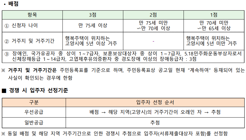 마지막으로 고령자, 주거급여수급자, 기존거주자 입니다