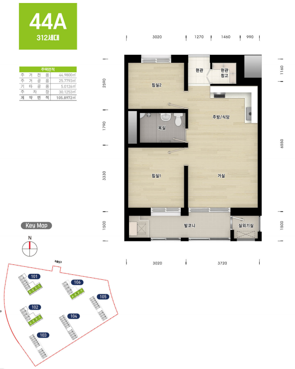마지막으로 고양장항 A-1BL 행복주택에서 가장 큰 평형의 44A형입니다