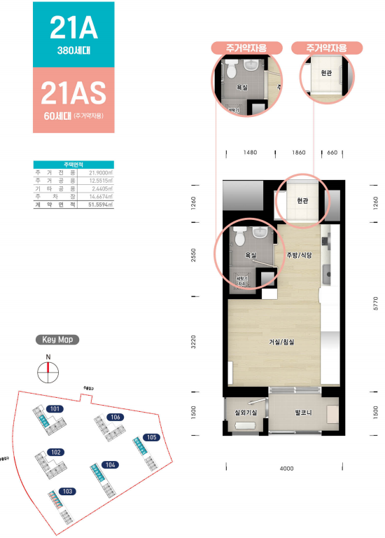 행복주택에서 가장 작은 평형의 21A 입니다 평형의 뒤에 S는 주거약자용입니다